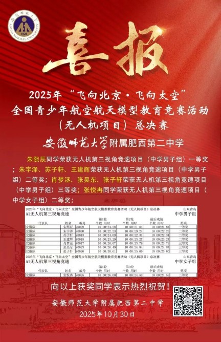 此次赛事展现了肥西二中学子在航模科技领域的实践能力与竞技水平,向获奖同学表示热烈祝贺!