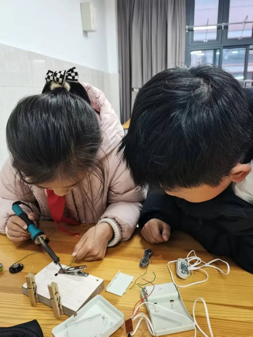 在电子制作大赛中,查文浩等7位同学凭借稳定发挥和精妙设计一举夺魁。在以上两项比赛中,赵岩、宋长江两位指导教师带领的跨年级团队,共斩获15个一等奖,成绩斐然。